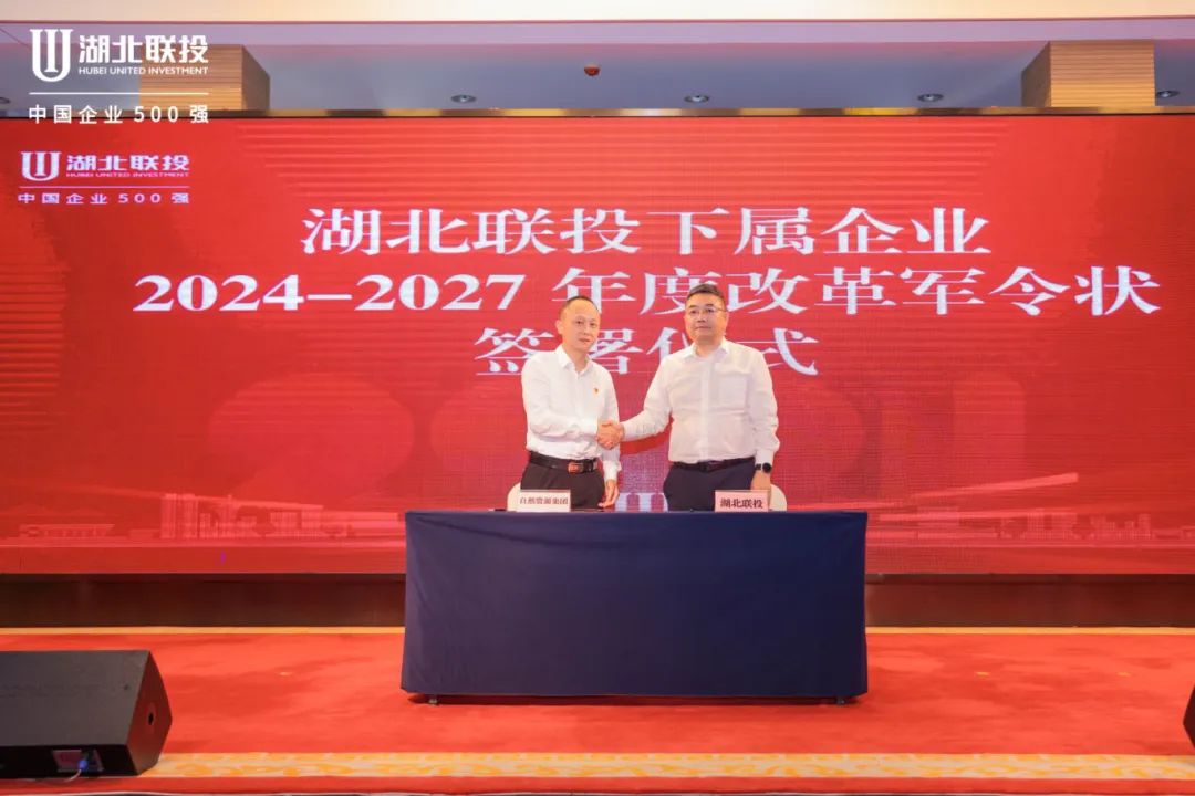 劉光輝與湖北建投集團(tuán)黨委副書(shū)記、董事長(zhǎng)丁峻,自然資源集團(tuán)黨委副書(shū)記、董事長(zhǎng)、總經(jīng)理劉祖雄分別簽訂深化改革軍令狀。