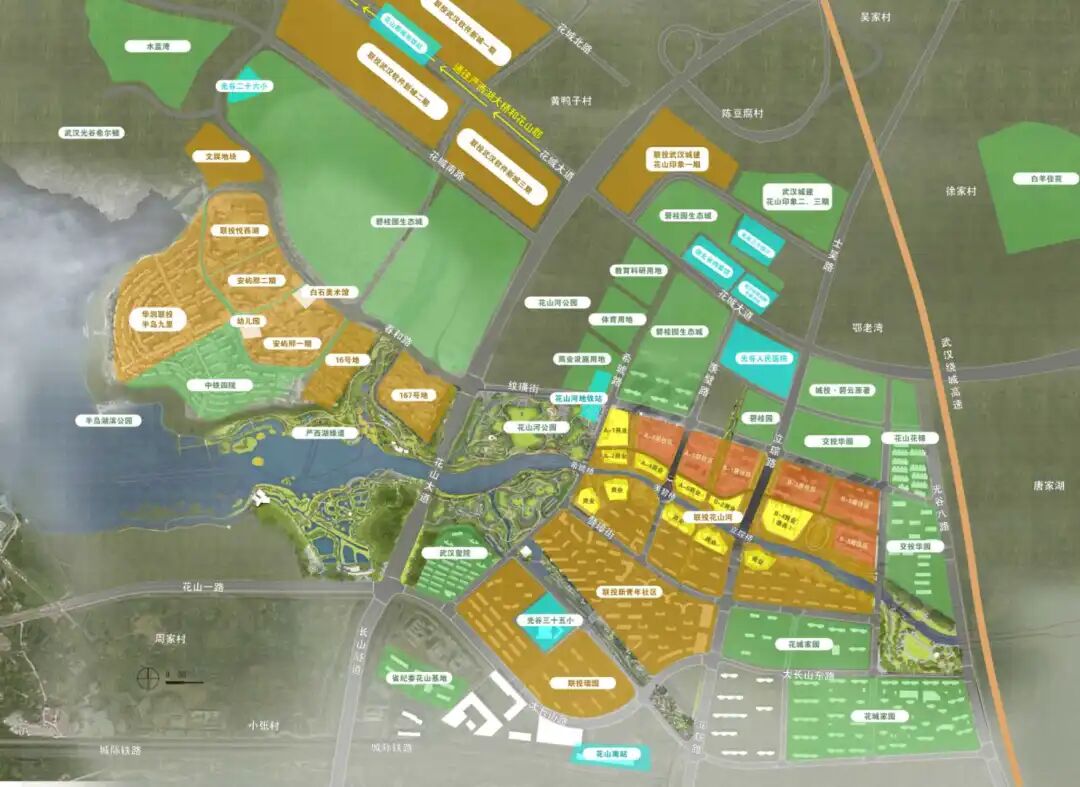 花山,原名福壽鄉(xiāng),位于武漢市洪山區(qū)花山鎮(zhèn)。這一片被“一江三湖”浸潤的土地,宛如一個不規(guī)則的圓形島嶼,正逐步完成從傳統(tǒng)漁鄉(xiāng)到現(xiàn)代新城的華麗蛻變。