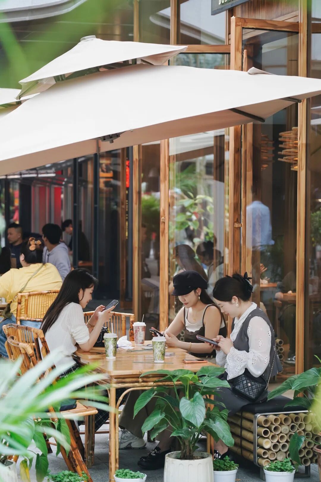 自然綠意被“種”進了商場的中庭、通道與下沉廣場。
