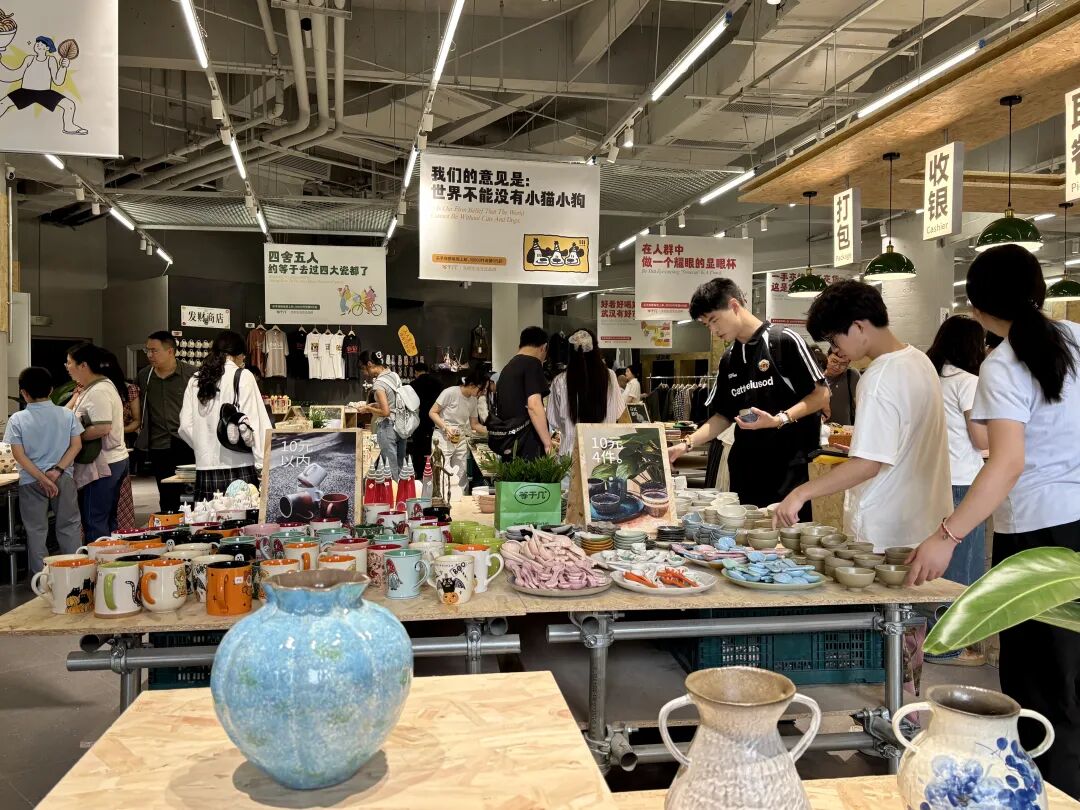 在等于幾(撿瓷)市集,從馬克杯、碗碟等日常器皿到手鏈、冰箱貼等精巧飾品,各式各樣的陶瓷琳瑯滿目。市民張女士沉浸其中,感受著“撿瓷”的獨特趣味:“手工藝品即使器型相同,細節(jié)處也總有獨屬于自己的印記。在這里哪怕挑上一小時,也不覺得浪費時間?!?/span>