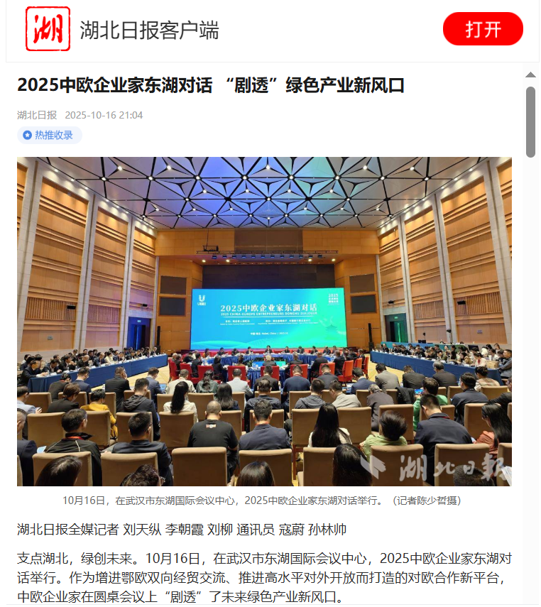 湖北日報:2025中歐企業(yè)家東湖對話 “劇透”綠色產(chǎn)業(yè)新風(fēng)口